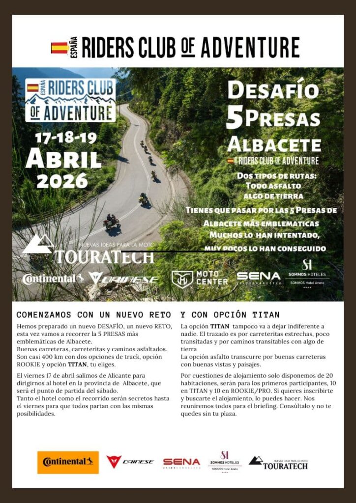 Desafío 5 presas Albacete 2026 transcurre por carreteritas, caminos asfaltados y caminos rotos de la provincia de Albacete. Un track al más puro estilo TOURATECH.